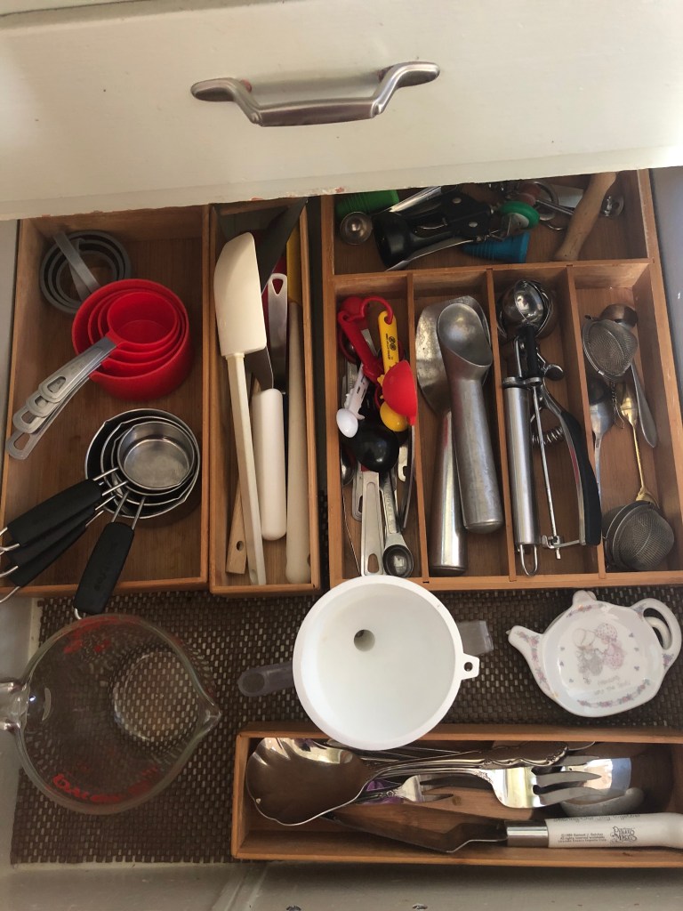 Other helpful tools like utensil containers, can keep your drawers from becoming a mess. I like the bamboo ones, but I also use some plastic ones.