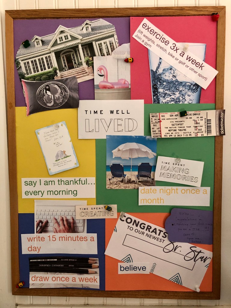 • Create a vision board to organize those goals and dreams you have been thinking about.
