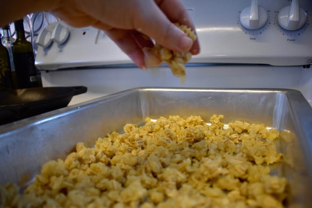 Sprinkle the remainder of the dry mixture on top. Bake for another 13-20 minutes at 350 degrees.